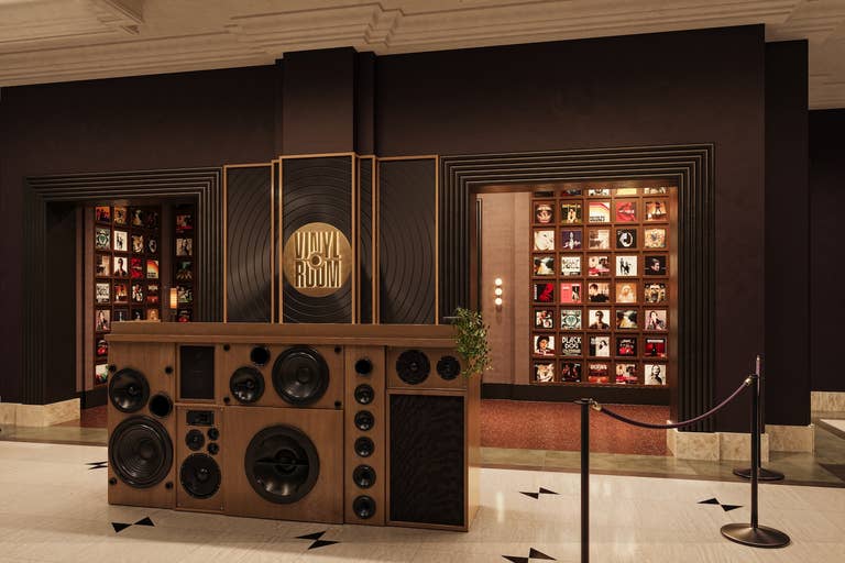 Vinyl Room is an elevated VIP space offering exclusive access to curated experiences and membership program high above the Las Vegas Strip. Located at Mandalay Bay, this one-of-a-kind venue is perfect for brand activations, convention events, corporate events, and cocktail receptions. Vinyl Room features vinyl decks delivering an unparalleled audio experience, private bars, and elevated lounge seating with flexible configurations for private events. With unlimited access to entertainment, full-service event production, and custom menus with signature cocktails, this distinctive venue turns every gathering into an exceptional experience.